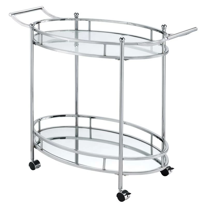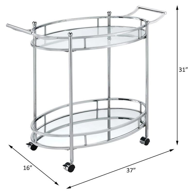Flash Sale π ACME Furniture ACME Jinx 2 Glass Tier Shelves Serving Cart With Wheels In Clear And Chrome π
