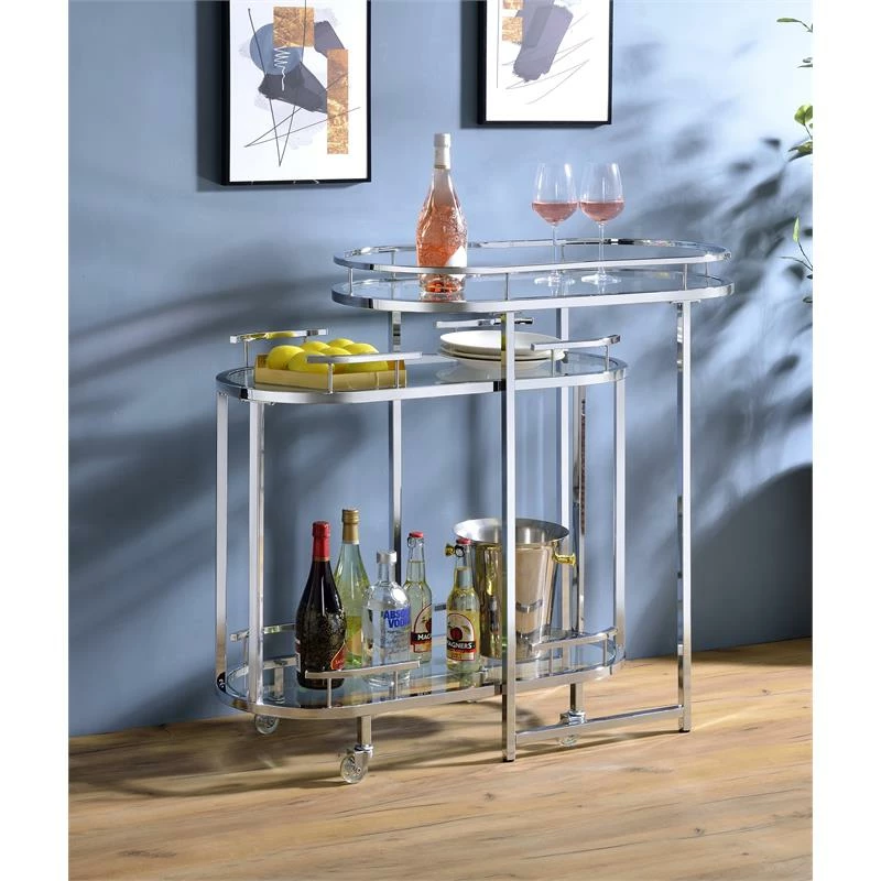 Discount π ACME Furniture ACME Piffo Glass Top Storage Serving Cart And Bar Table In Clear And Chrome π