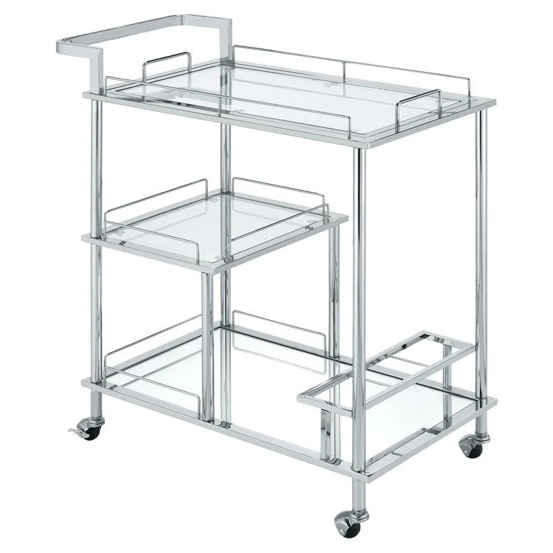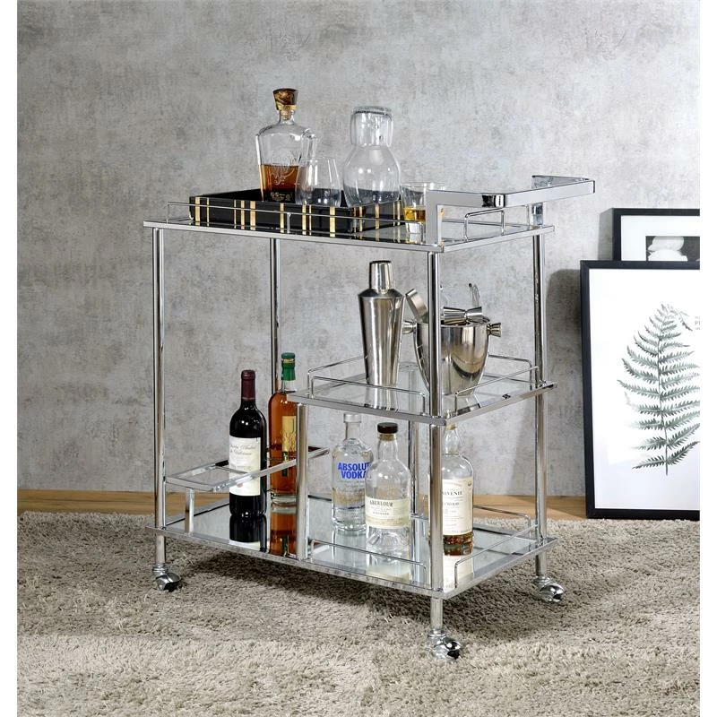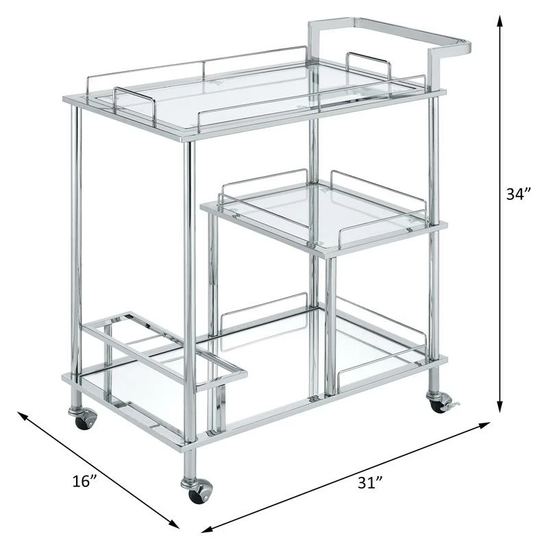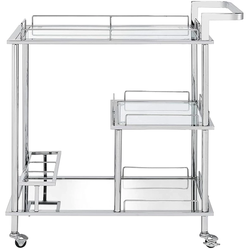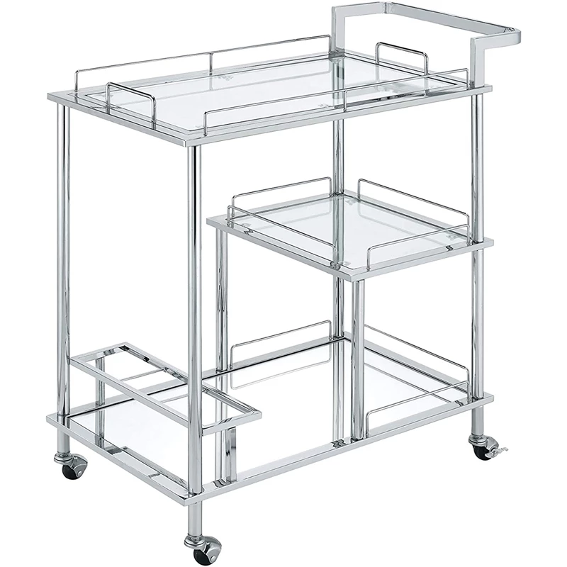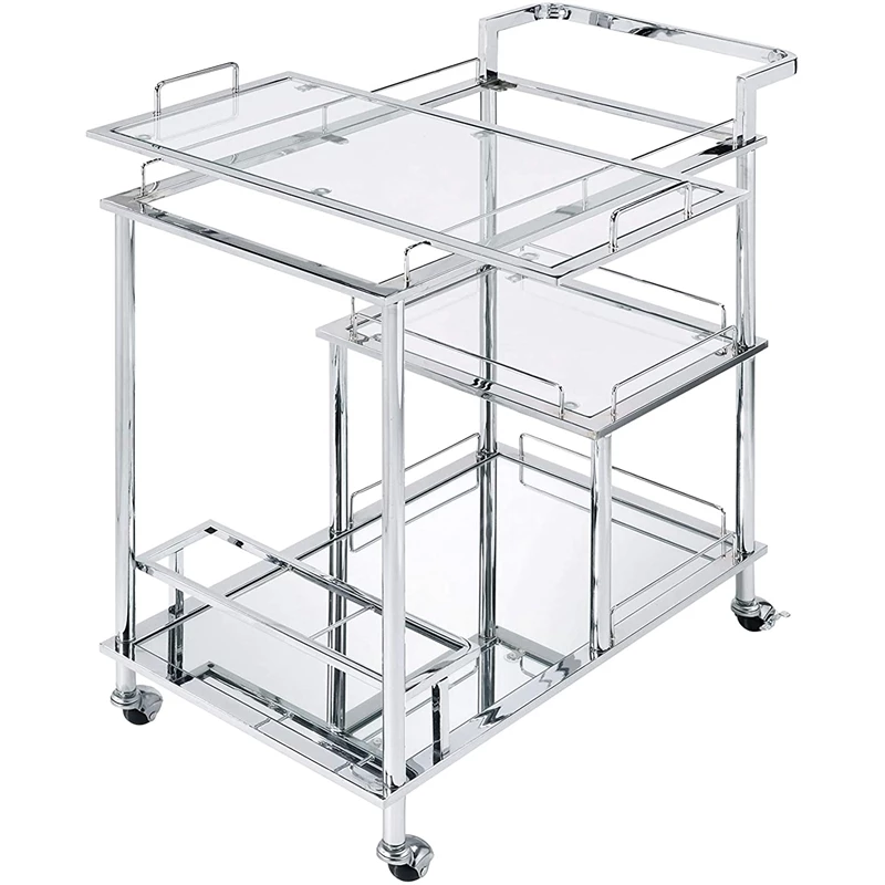 Buy π ACME Furniture ACME Splinter Glass Tier Shelves Serving Cart With Wheels In Clear And Chrome π