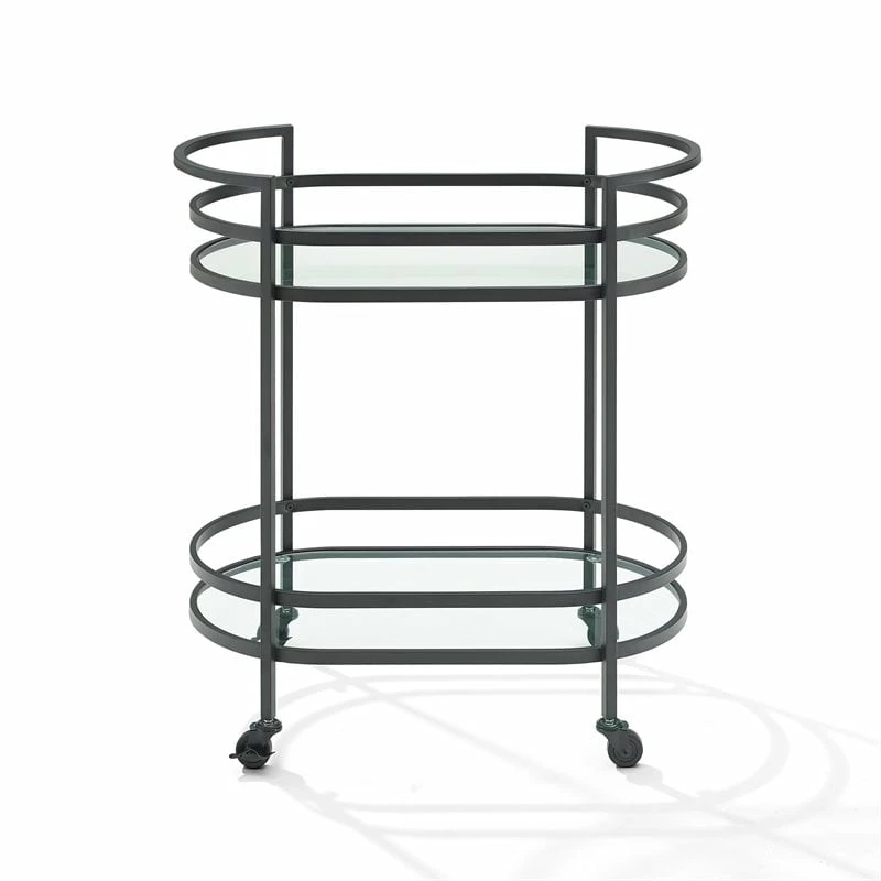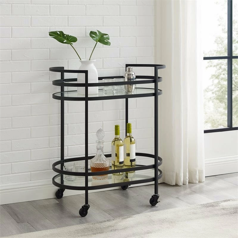 Deals βοΈ Allora Modern Metal Bar Cart With 2 Tempered Glass Shelves In Matte Black π€©