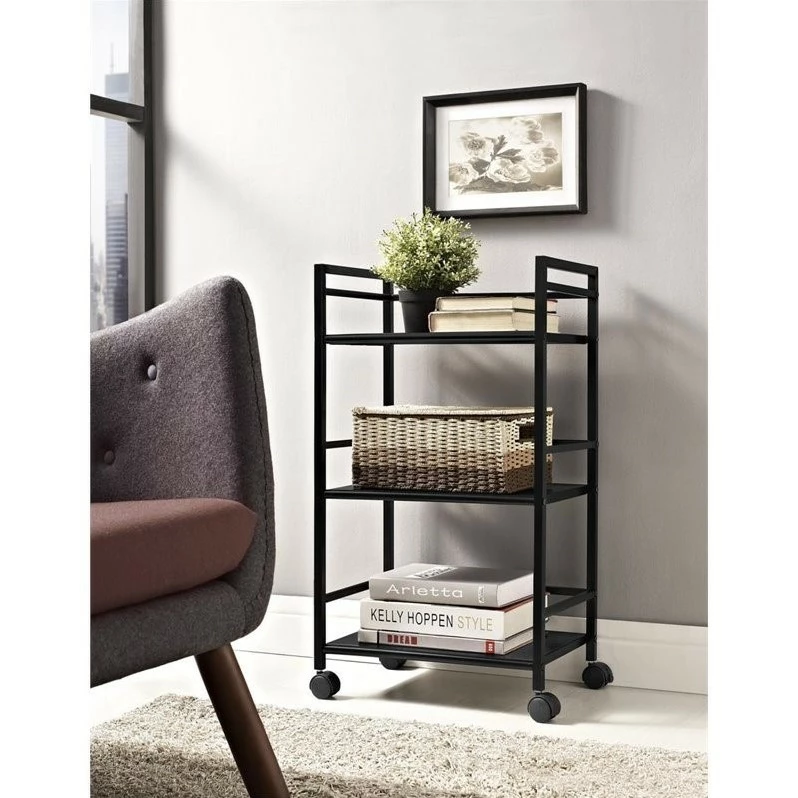 New ⭐ Ameriwood Home Altra Furniture Marshall 3 Shelf Metal Rolling Utility Cart In Black ⭐