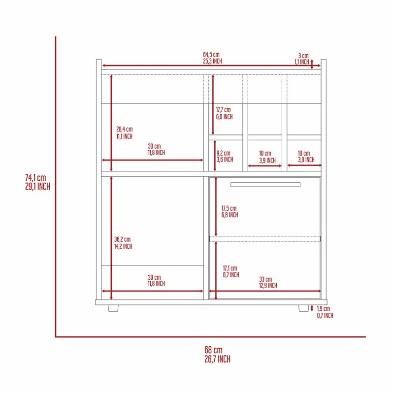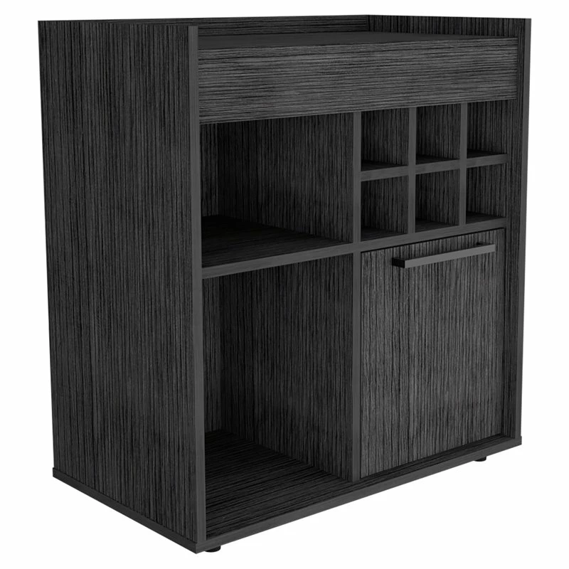 With this beautiful bar cabinet, you can receive all the visitors you were expecting without worrying about the number of guests because thanks to this beautiful piece of furniture, you have the possibility of storing many bottles of liquor and glasses to toast. This unique and practical Bar Cabinet was designed to look beautiful and elegant in any space where you want to accommodate it. Take advantage of this marvelous Bar Cabinet and turn your home into the most sensational one. The cabinet features a booth with two shelves, two spacious open shelves, six small shelves for liquor stores, and the surface is used to make preparations. Smokey Oak Finish.