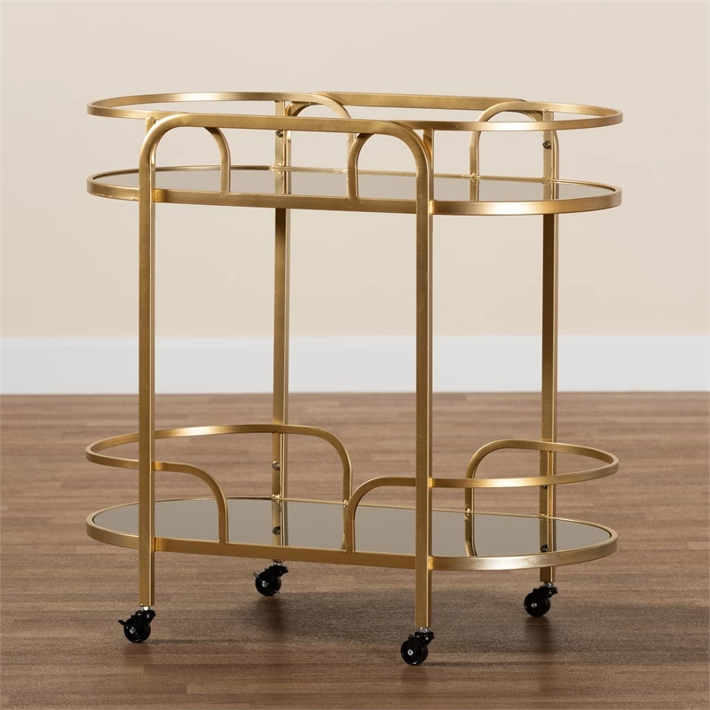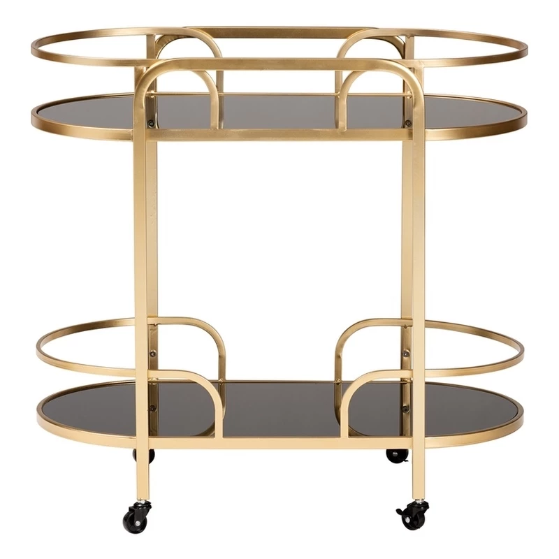 Deals βοΈ Baxton Studio Leighton Gold Metal And Tempered Glass 2-Tier Wine Cart π