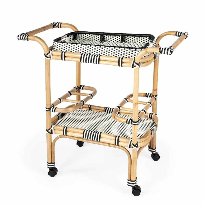 Brand new β Beaumont Lane Black & White Rattan Bar Cart π