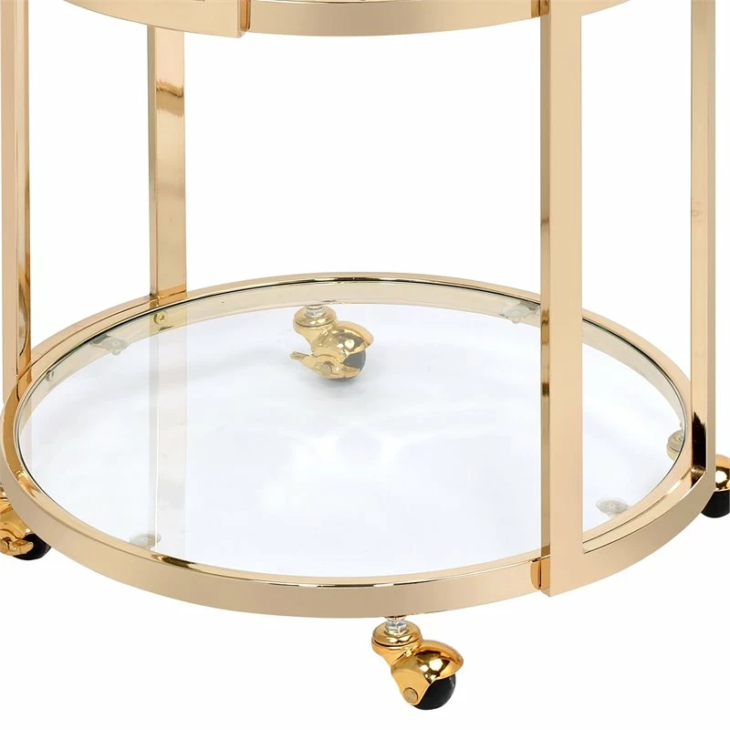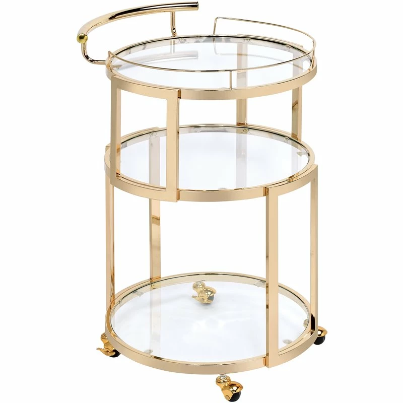 Discount π₯ Benjara 19.68″ 3-tier Metal Serving Cart With Round Glass Shelves In Gold π