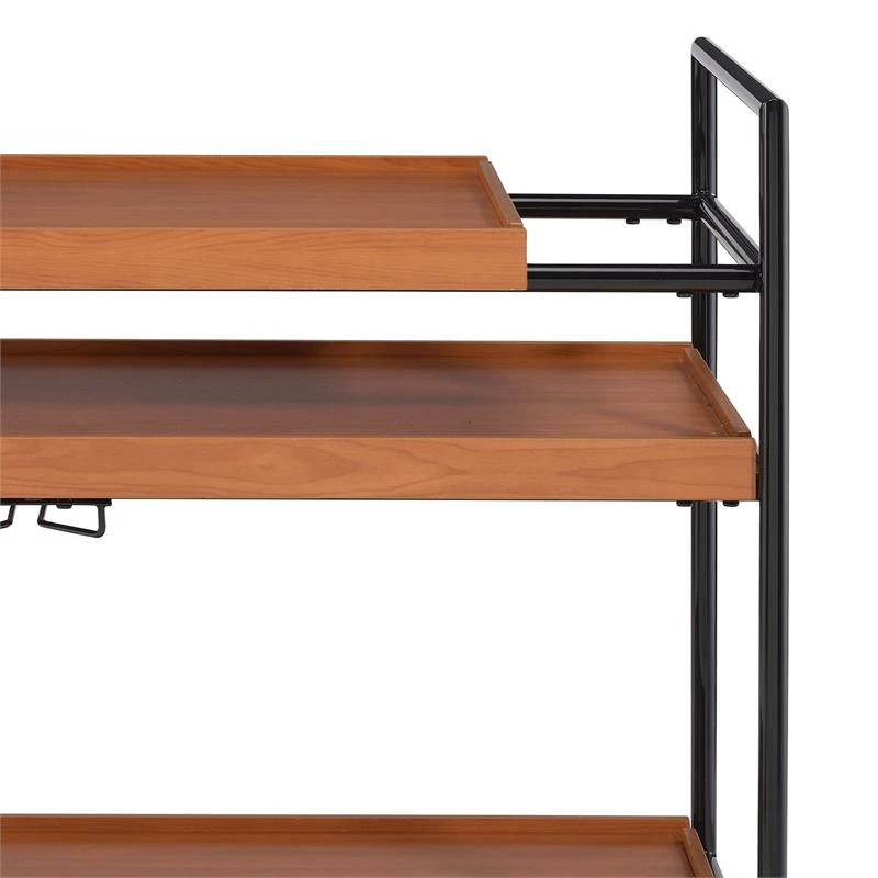 Incorporate a perfect display and storage option to your home with the inclusion of this versatile Serving Cart. Featuring an open metal frame in a black finish, this cart comes with three oak brown finish, adjustable storage compartments that offer ample space for showcasing decor items as well as for the utility storage.