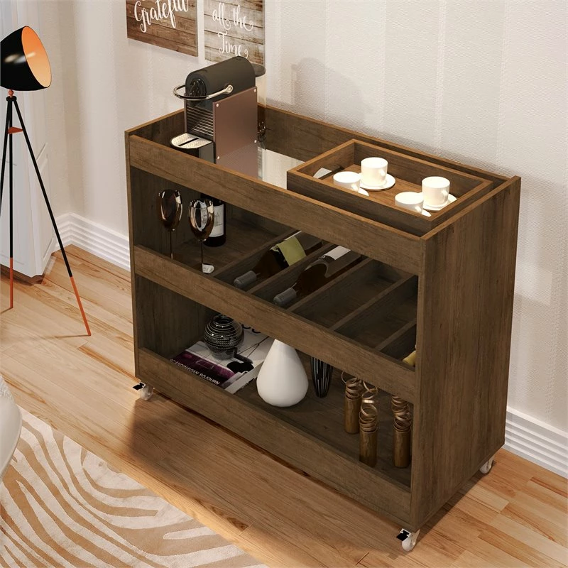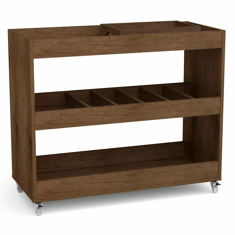 Deals β€οΈ Boahaus Rhyl 5-Rack Modern Wood Bar Cart With Lockable Casters In Dark Brown π