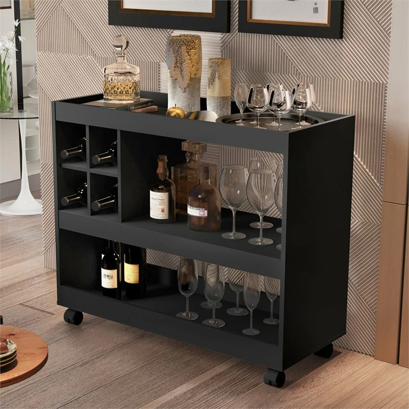 New π Boahaus Swansea 4-Rack Modern Wood Bar Cart With Lockable Casters In Black π€©