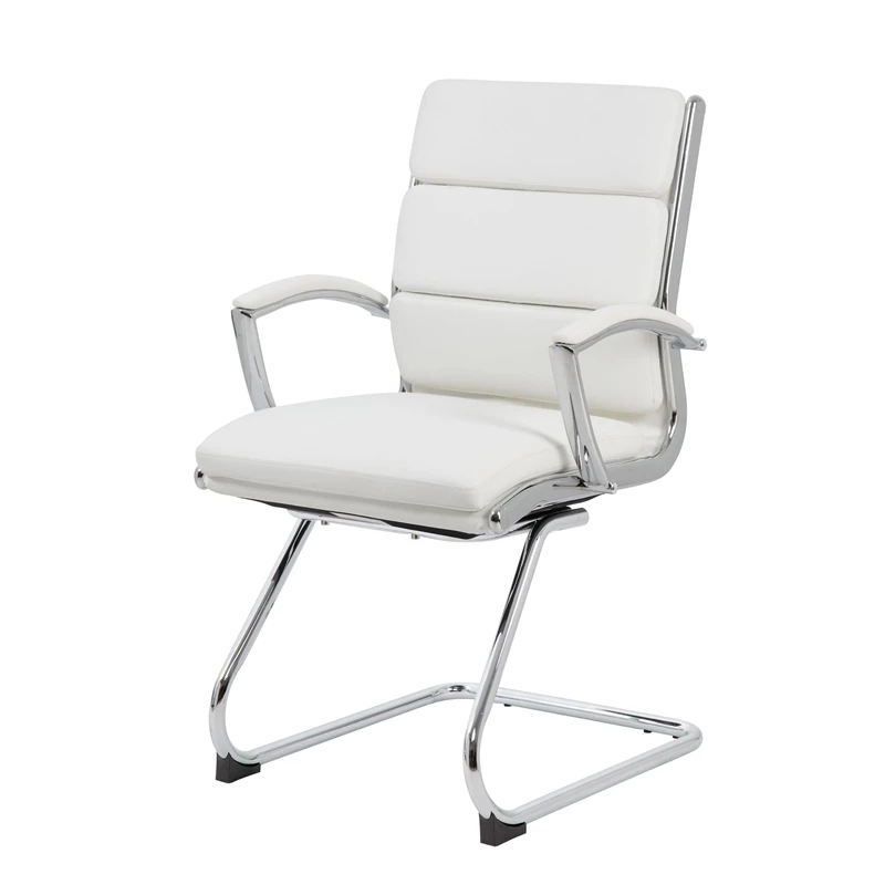 The CaressoftPlus executive guest chair in white with the metal chrome finish is as comfortable as it is handsome. This is the perfect guest chair for most any room or office and adds a pop of modernism to any room. The chair is made with a material called CaressoftPlus which is a trademarked vinyl that is an ultra-soft, breathable upholstery that looks & feels like leather, but more durable & easy to clean. It has been designed with a sturdy chrome cantilever base and has a weight capacity of 275 lbs.