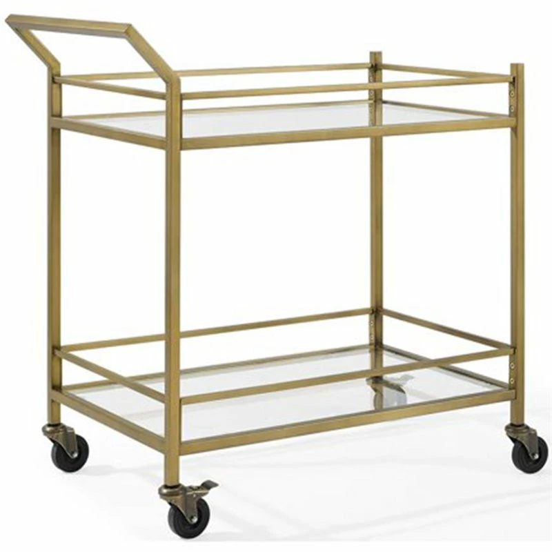 Cheap π₯° Bowery Hill 2 Tier Glass Top Bar Cart In Antique Gold Finish π₯°