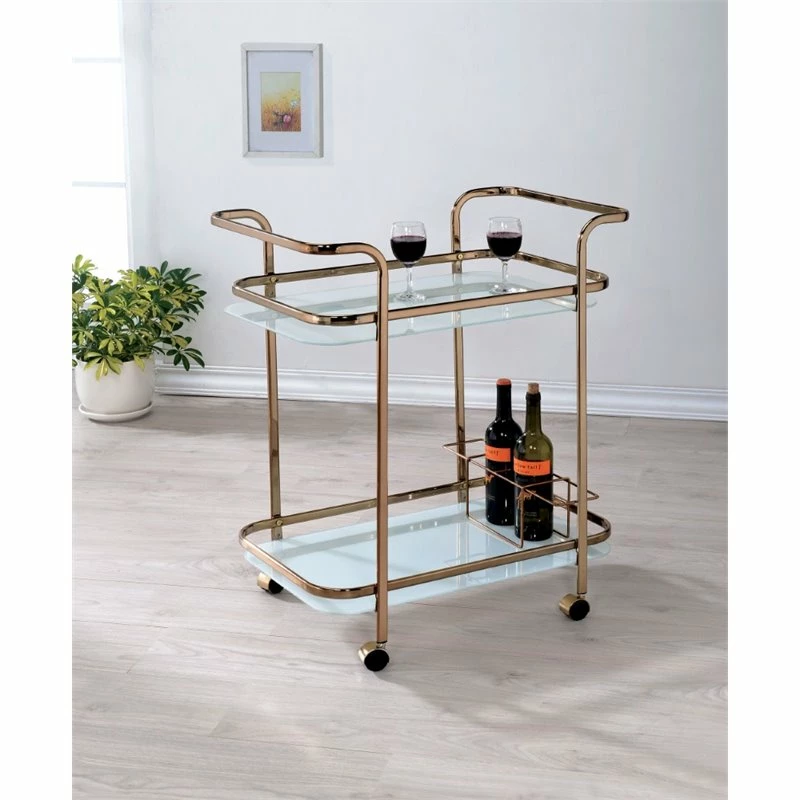 Lowest price online On all Bowery Hill Glass Bar Cart in Champagne – BH-1465429
