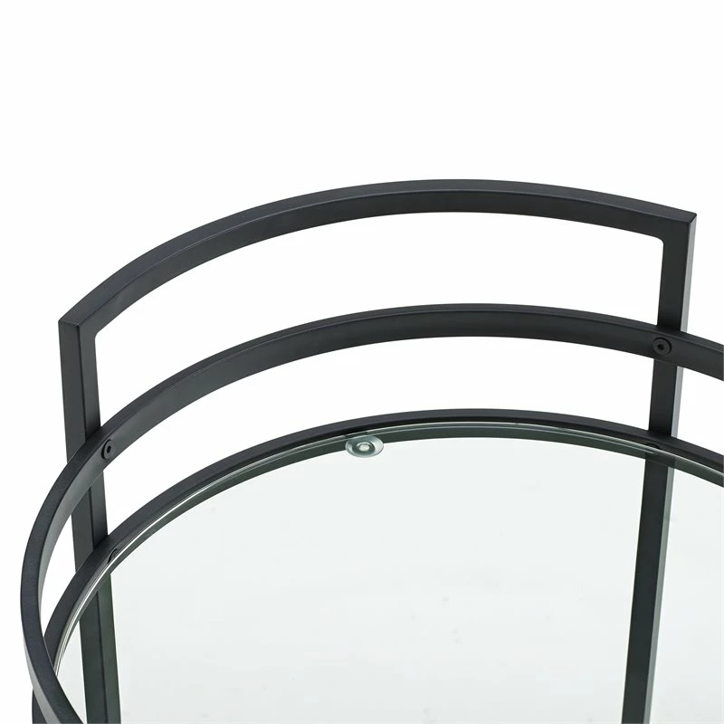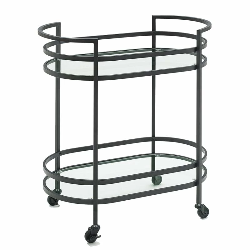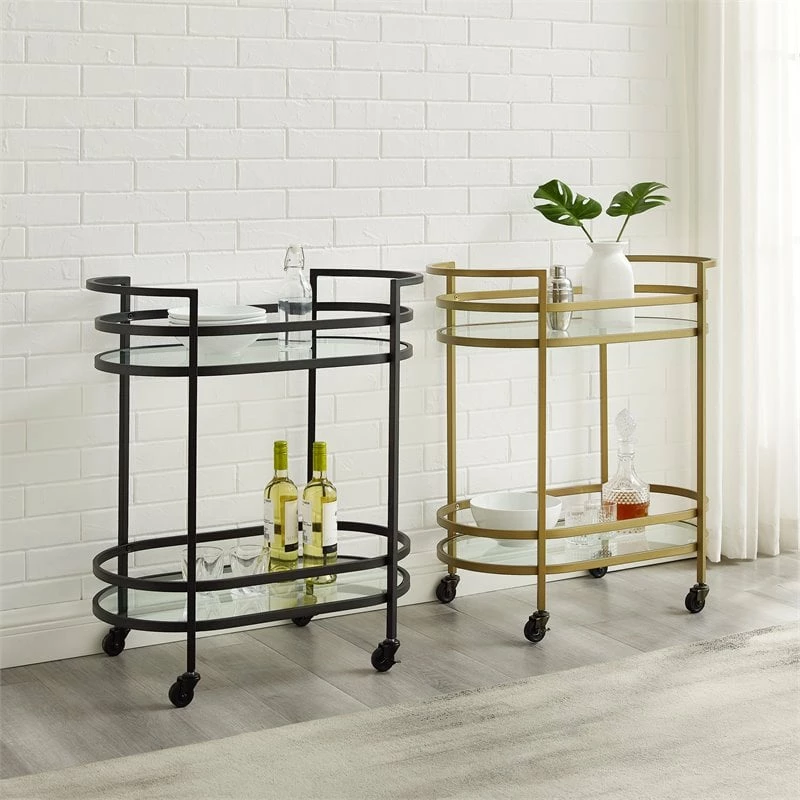 Featuring a classic design with a modern finish, the Bar cart is ready to party. With a streamlined silhouette and caster wheels, this cart creates a mobile beverage station or display space. The two tempered glass shelves can support wine and liquor bottles, as well as glassware and decor. The Bar Cart is a lovely addition to any room of your home.