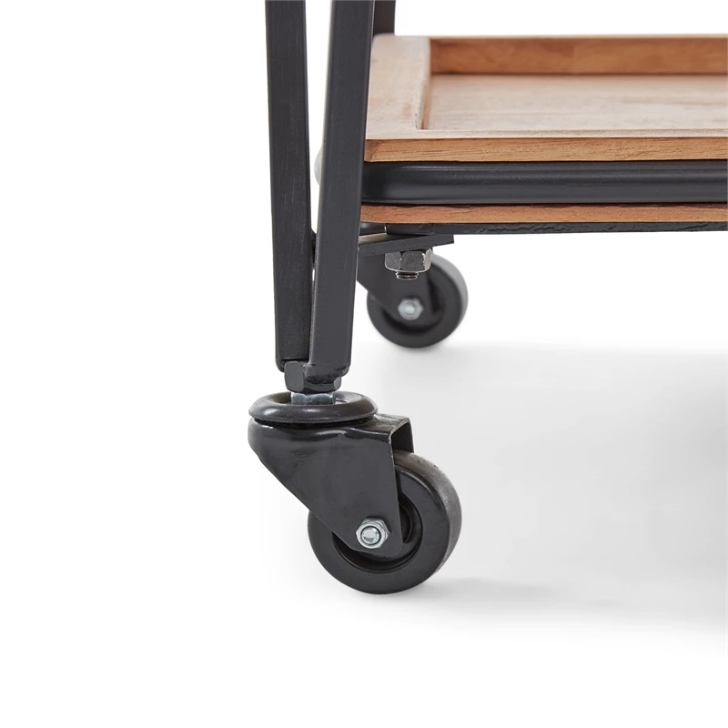 A sweet little cart that’s one part industrial charm, one part upscale hotel. The Cooper bar cart has a black metal frame that leans on urban architectural inspiration. Solid wood trays offer down-home, rustic appeal with their natural figuring and enhanced grains. Find a home for this versatile furniture piece in most any room. We’ve seen it expand storage space in a galley kitchen to hold a microwave, fruit bowl and spices; in a bathroom, it displays toiletries, candles and rolled towels for a spa-like effect. But what the Cooper loves most is a good party. You can easily roll this cart out to your soiree space when it’s time to serve guests drinks and hors d’oeuvres with a smile, and there’s plenty of room for that ice bucket and cocktail napkins too. The side lip of the trays keeps everything neatly in place, and two of the wheels lock for added security.