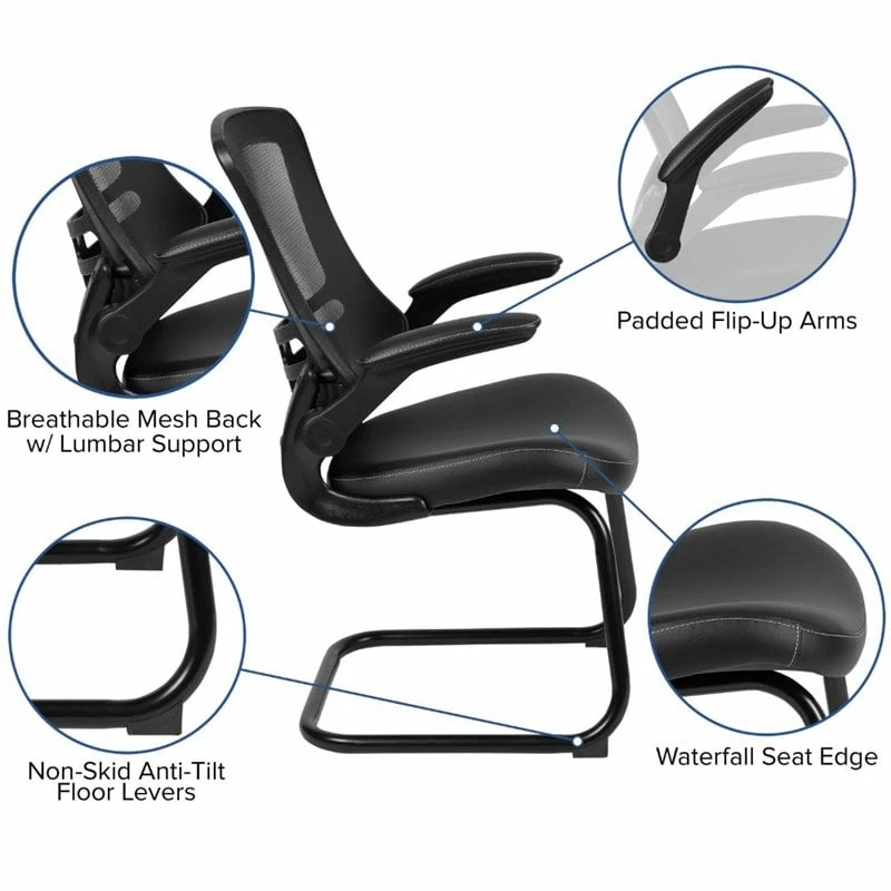 Now your favorite mesh executive swivel ergonomic office chair has a matching guest chair for your office. Don’t have our high back mesh office chair? No worries, this cantilever base side guest chair will suit any office or reception lounge all on its own. Establish a professional environment in your office with a pair of mesh back side chairs that can be placed around a table to serve as your meeting space. Having comfortable guest seating is essential for closing major deals, the waterfall seat edge will reduce the pressure off your legs that comes along with sitting for long periods of time. Any guest who sits in this mesh back guest chair will be delighted with its awe-inspiring features: – Ventilated mesh back keeps air circulating – – Padded flip-up armrests relieve pressure off the shoulders and neck or flip out the way to slide under the table – – Reinforced cantilever base with anti-tip glides provide a safe seating experience – Set an inviting tone with seating that reflects comfort, style and durability. You will not be disappointed in your purchase, buy a pair of sled base mesh guest chairs for your office or reception area today.