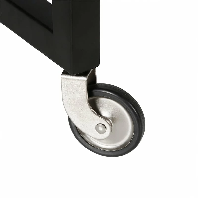 This modern contemporary bar cart is the perfect addition to your dining room or entertaining space. A sturdy metal frame borders the glass table top and two-tiered shelves. The raised frame provides security for your bottles and mixers while the four wheels provide easy mobility from room to room. Not a party animal? Re-purpose this piece as a coffee station, mobile vanity, or nightstand!
