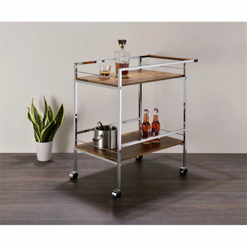 New π IN Room Furniture Designs Contemporary Metal Serving Cart In Chrome/Oak π