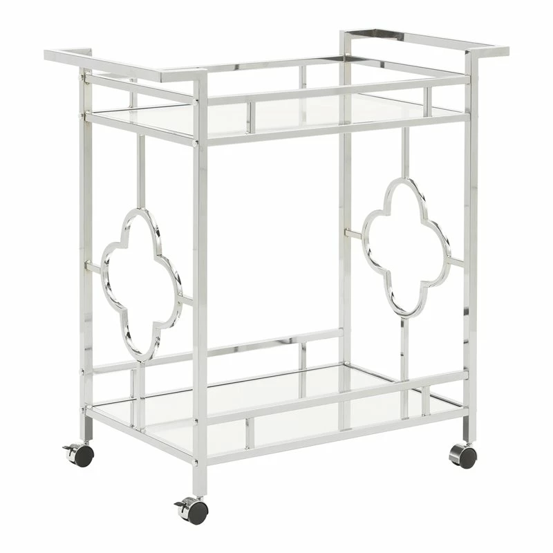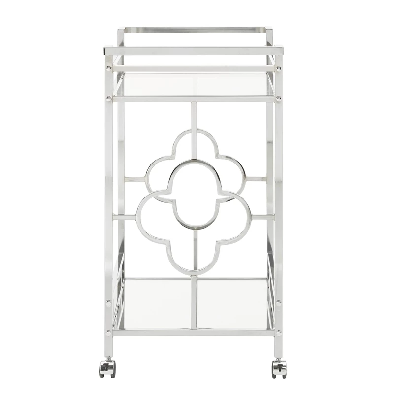 A sophisticated rounded quatrefoil pattern surrounds each edge of the cart to add an intentional standout statement within your home.