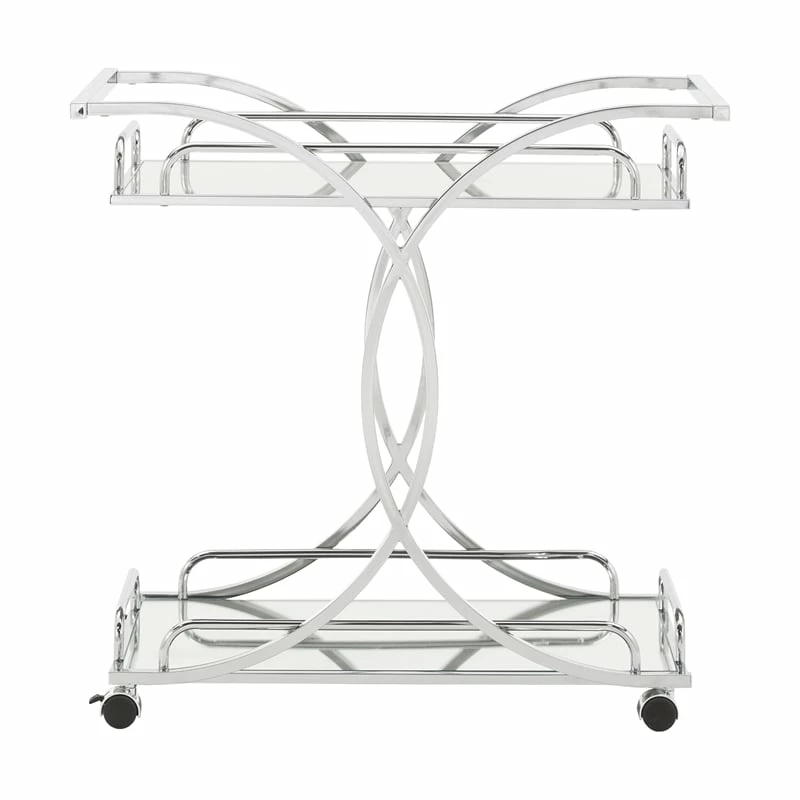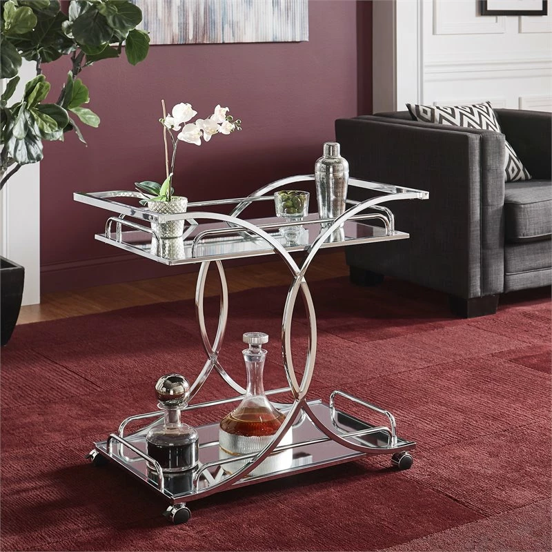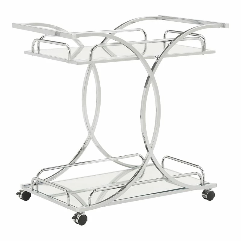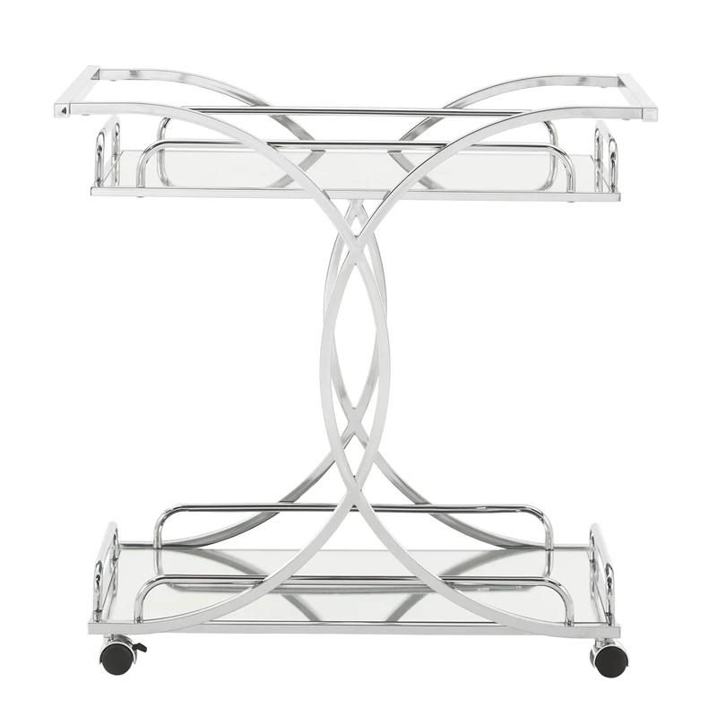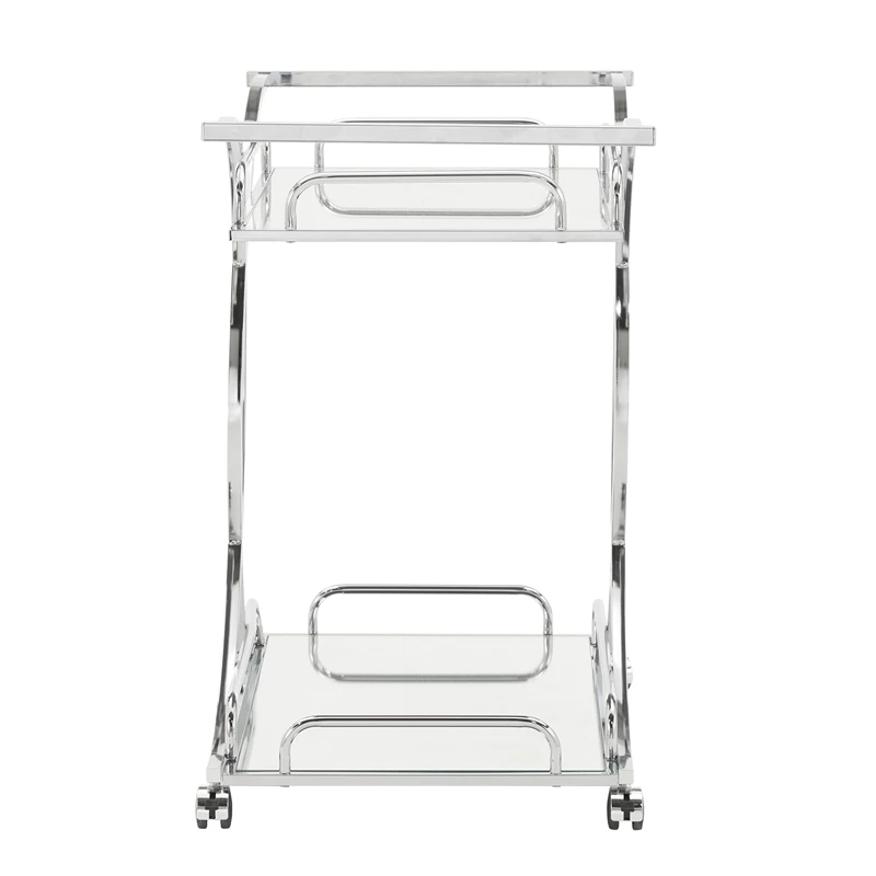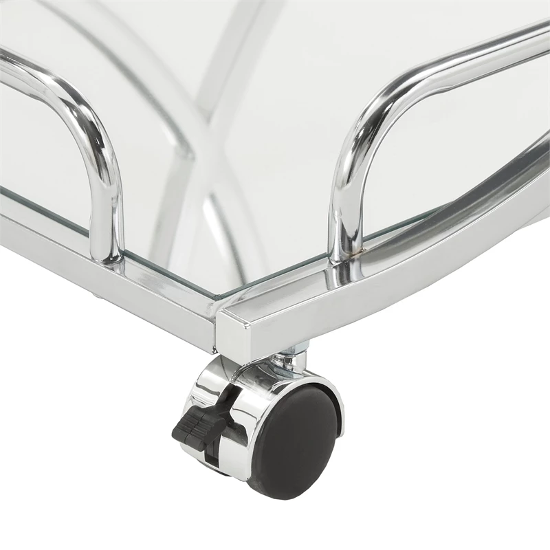 The fully mirrored top adds style to every inch of this glamorous cart for a chic glam moment. The elegant chrome fishtail detailing will give your space a touch of unmistakable luxury that you and your guests are sure to love.