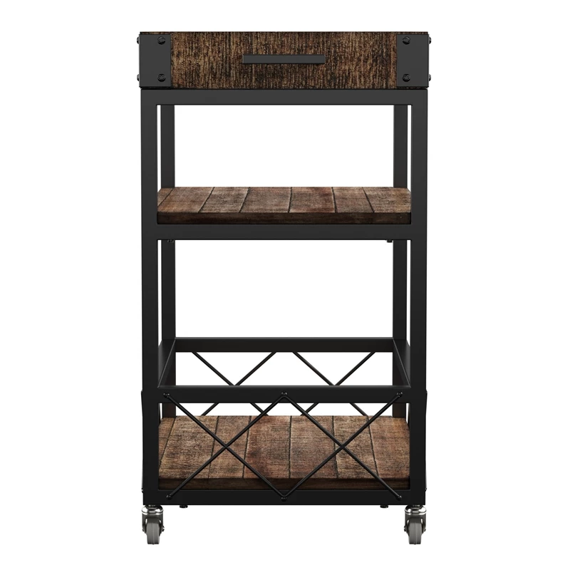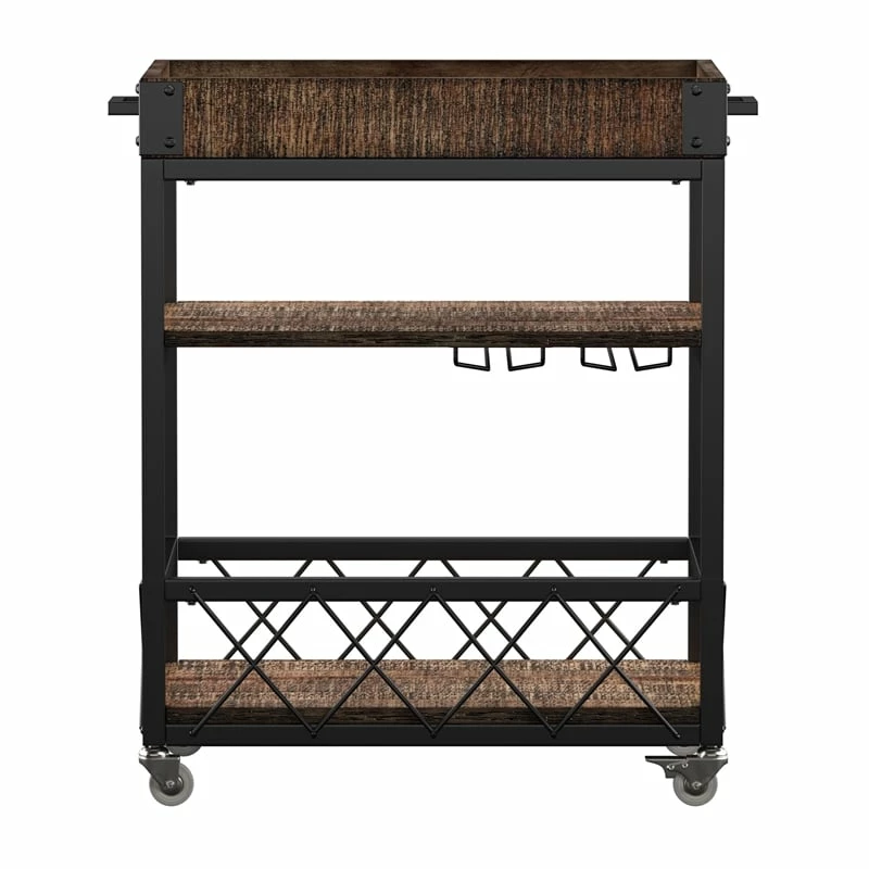This kitchen bar cart has a unique metal and weathered wood design giving your living space a unique, vintage-industrial look. With its clean lines, sturdy metal frame, and a wooden surface this item is built to withstand years of use.