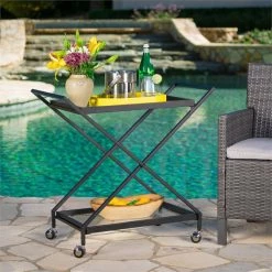 Best deal βοΈ Noble House Annika Iron Outdoor Bar Cart With Tempered Glass Shelves In Black β