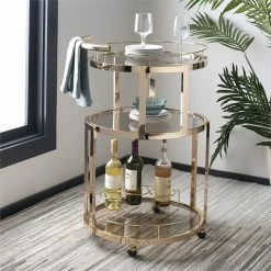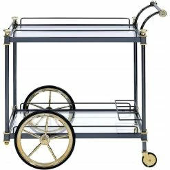 Budget π₯° Benjara 19.69″ Transitional Metal Serving Cart With Glass Shelves In Gold π₯