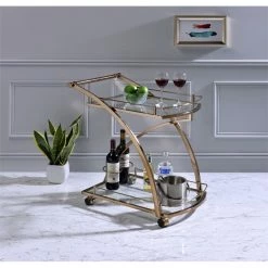 Deals π ACME Furniture ACME Helmut Serving Cart In Gold Plated And Clear Glass π€©