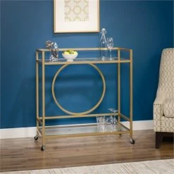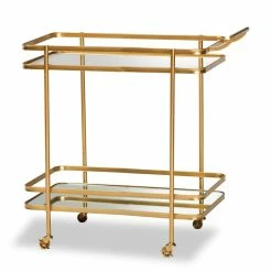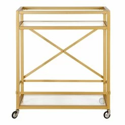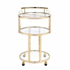 Discount π₯ Benjara 19.68″ 3-tier Metal Serving Cart With Round Glass Shelves In Gold π