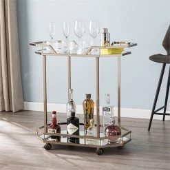 Discount π Southern Enterprises SEI Furniture Ari 31″ Mirrored Bar Cart In Champagne π―