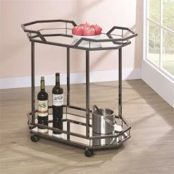 Outlet π Benjara 16″ 2-tier Contemporary Metal Serving Cart With Wood Shelves In Black βοΈ