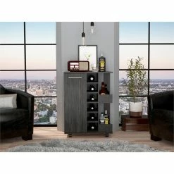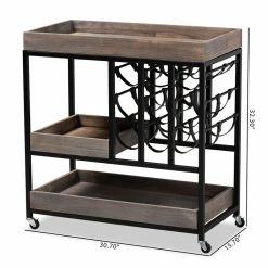 Wholesale π FM Furniture Leeds Modern Wood Bar Cart With One Cabinet In Smokey Oak Black π