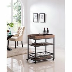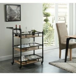 Best Sale β€οΈ IN Room Furniture Designs Traditional Metal Serving Cart In Black/Walnut βοΈ