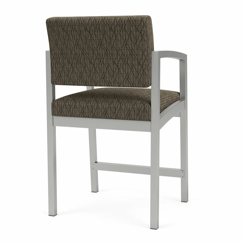 The Lenox Steel hip chair with its graceful transitional styling, gently sloped arm design, and upholstered seat and back cushions will give your space a light, airy look. Features include sturdy steel construction, durable powder coat finish, comfortable Matrex seat support system and a sturdy steel footrest. Available in stain-resistant solid fabric, alluring designer fabric, and easy-clean, heavy-duty vinyl and polyurethane upholstery options. 300 lb weight capacity.