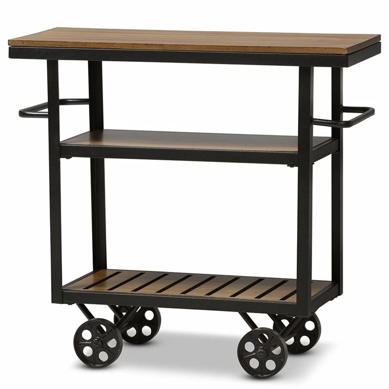 Hot Sale ❤️ Maddie Home Bar Cart In Distressed Oak And Antique Black 🤩