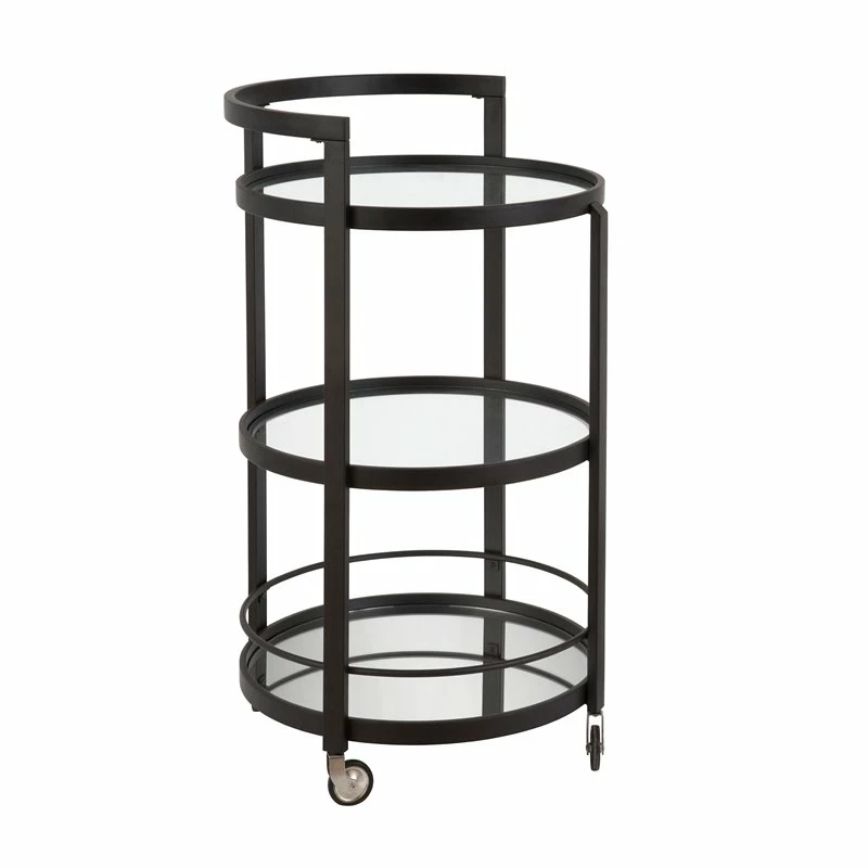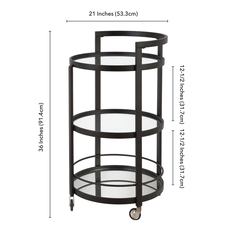 Best Sale π€© Maklaine Contemporary 21″ Glam Mirrored Glass Round Bar Cart In Black/Bronze π§¨
