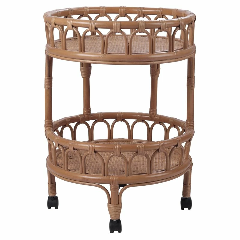 Dijon rattan cart is the accent piece that you’ll use every day for display and storage, and then repurpose as a bar cart or drinks table during your next party. The warm, Canary Brown finish pairs well with other warm neutral hues. Fully assembled.