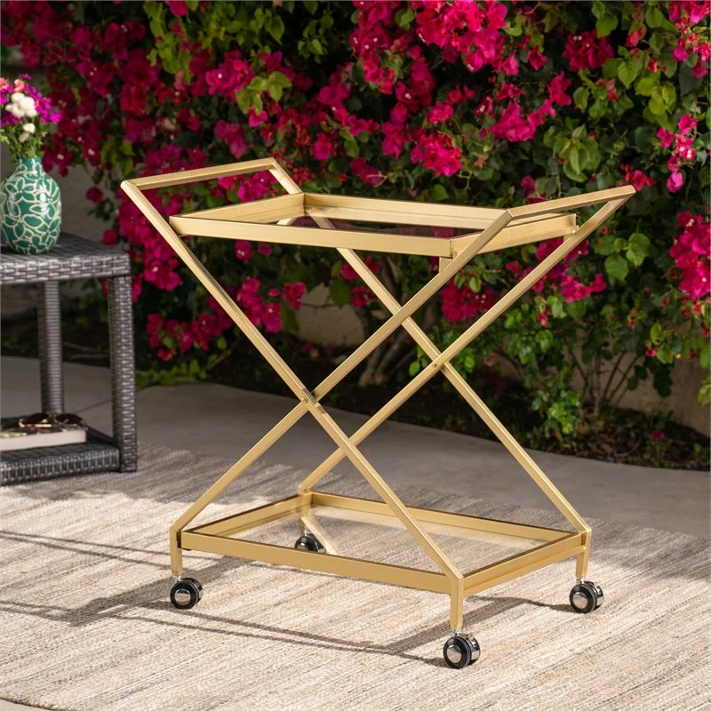 Wholesale π― Noble House Annika Outdoor Iron Bar Cart With Tempered Glass Shelves In Gold π