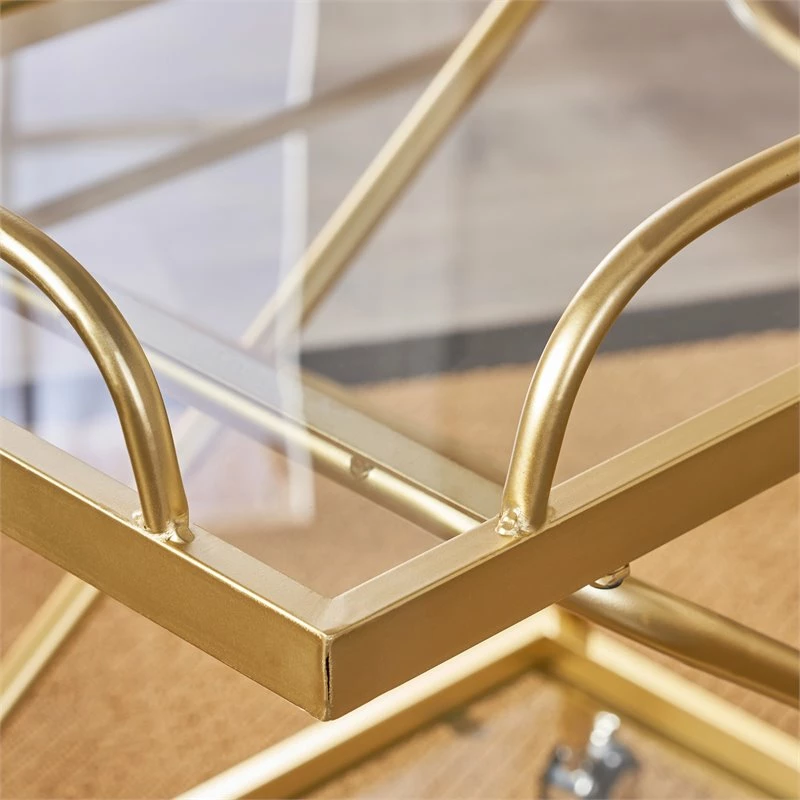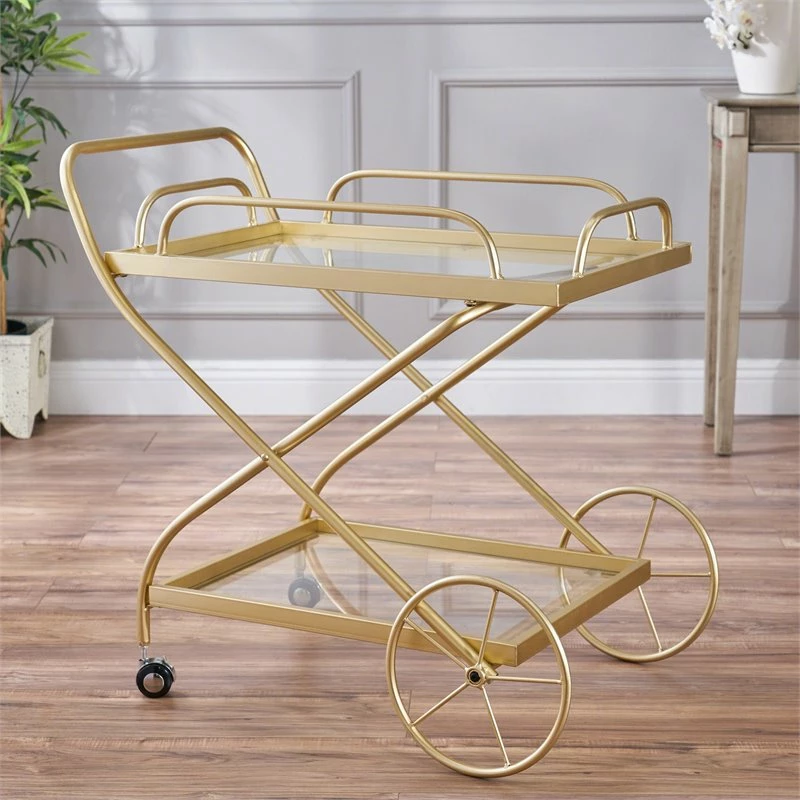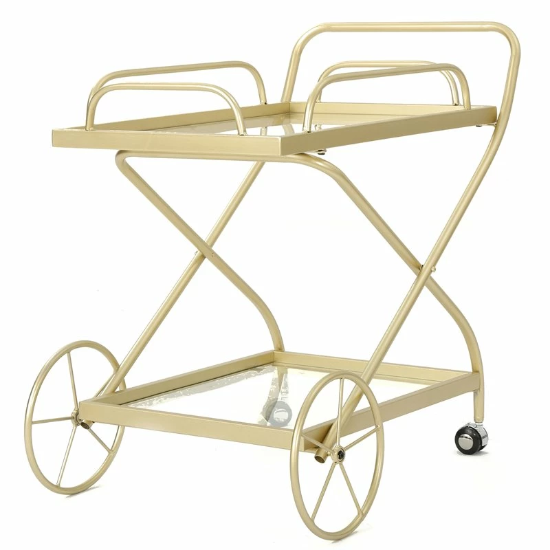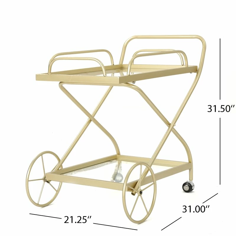 Wholesale ⌛ Noble House Perley Contemporary Indoor Iron And Glass Bar Cart In Gold ✔️