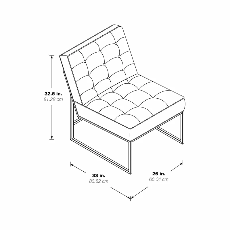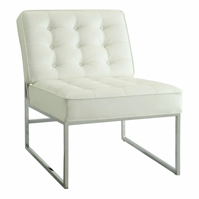 Anthony 26 inches Wide Chair with Chrome Base and White Faux Leather Fabric The Anthony chair combines the best necessities of guest seating for any working space. A classic tufted cushion gives an air of old-fashioned luxury, but its chrome finish box tubing adds contemporary aesthetic. Combined together they make a professional, functional, and sturdy furnishing. The smart-looking seat is easy to care for and clean and covers plush padding for ultimate comfort. Sitters will undeniably be content in a chair that feels wonderful and looks totally fresh.