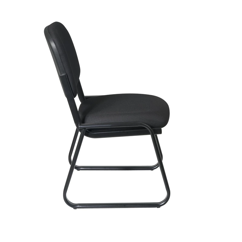 Deluxe Sled Base Armless Chair with Designer Plastic Shell in Black Durable & functional seating arrive to you in the form of the deluxe Sled Base Chair. Available a Classic Black fabric that can easily match existing home, office, or lobby décor, this light weight yet remarkably sturdy chair is fully equipped with thick high quality padding that provides you and your visitors with the best in seating comfort. Constructed with a stout steel frame that is fully finished in black, this chair can comfortably withstand the weight of individuals of both large and small statures and contend with the wear and tear of daily use. Fully backed by our 15 Year limited Warranty, you can relax in comfort knowing that this seating option will provide you with comfort and professional looks for years to come. Add to cart now and start enjoying this awesome piece for years to come.