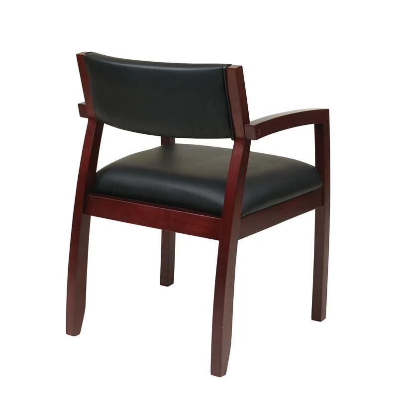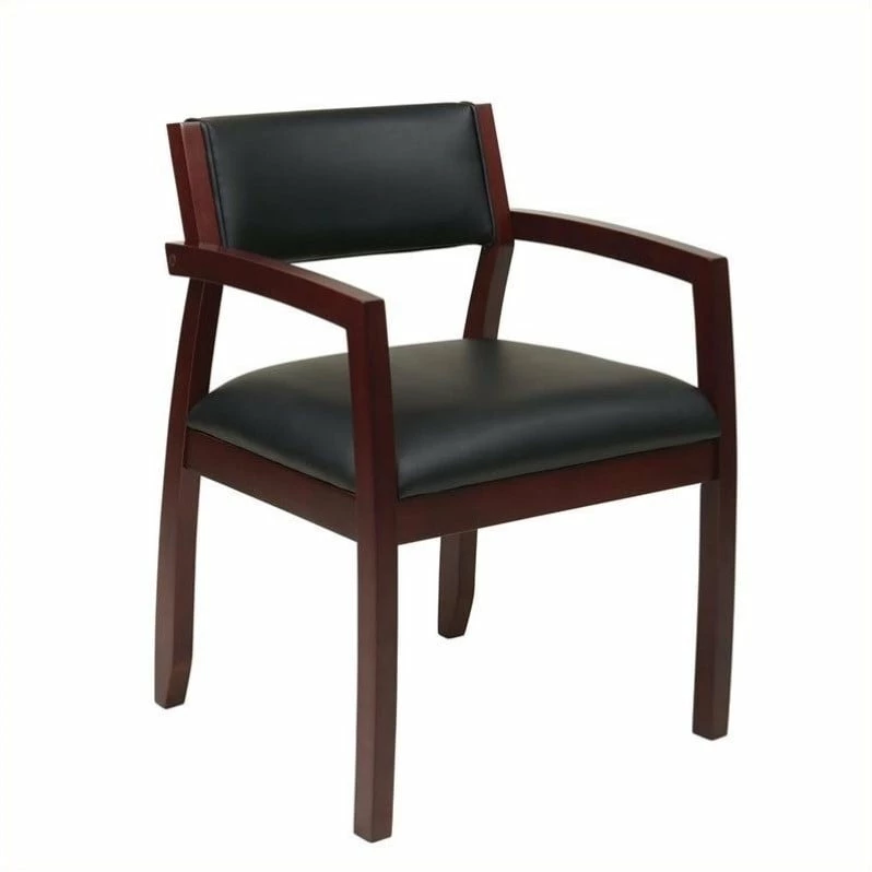 Napa Mahogany Brown Guest Chair with Black Bonded Leather Make an impression and welcome visitors in your office or waiting room with this classic wood chair. Guests will enjoy the comfort of the plush, padded seat while they sit and wait. You’ll enjoy the exceptional value of the durable fabric and wood frame designed for high traffic spaces. Available in multiple wood finish options to match a variety of office decor, it’s easy to upgrade your reception furniture with the Napa guest chair.