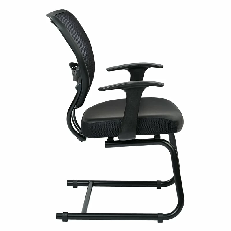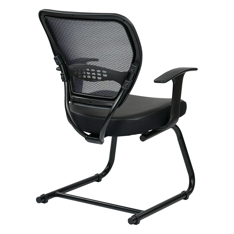 Professional Air Grid Back Visitors Chair with Bonded Leather Seat in Black The 57 series chairs are sure to astonish everyone in your office. The modern leather seat with built-in lumbar support provides comfortable seating. The guest chair has fixed angled T-arms and a heavy-duty black finish sled base.
