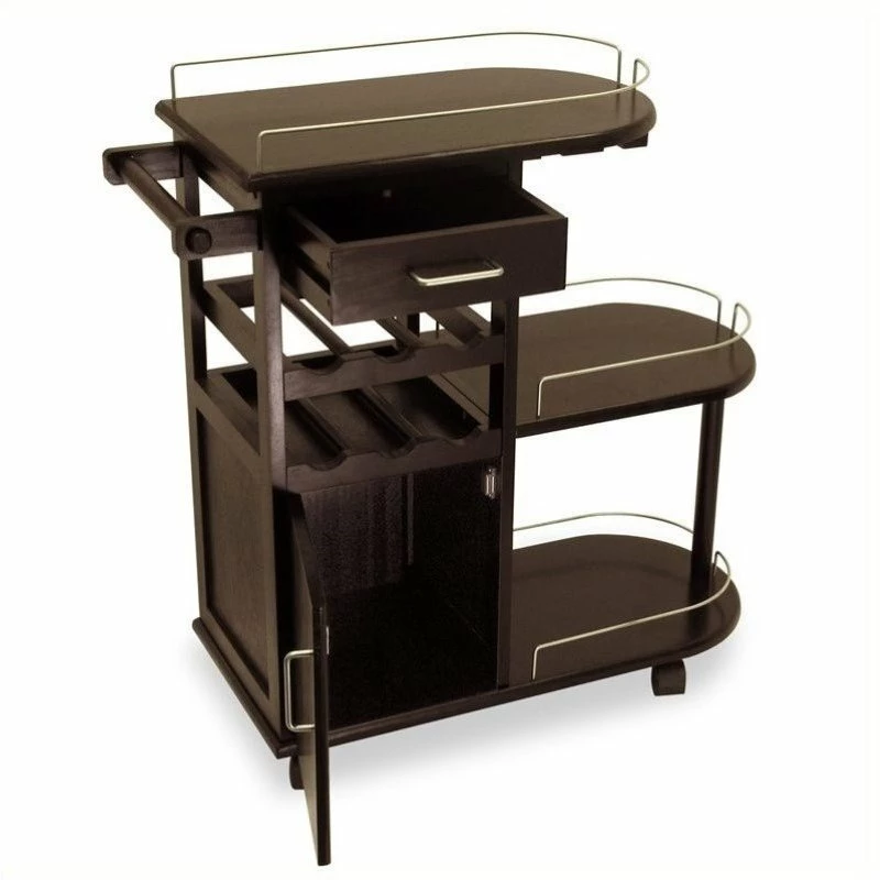 Bring the fun right to your guests with this handy rolling entertainment cart. Hold, tote and serve wine bottles and glasses and more.