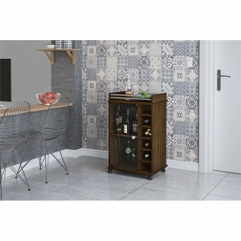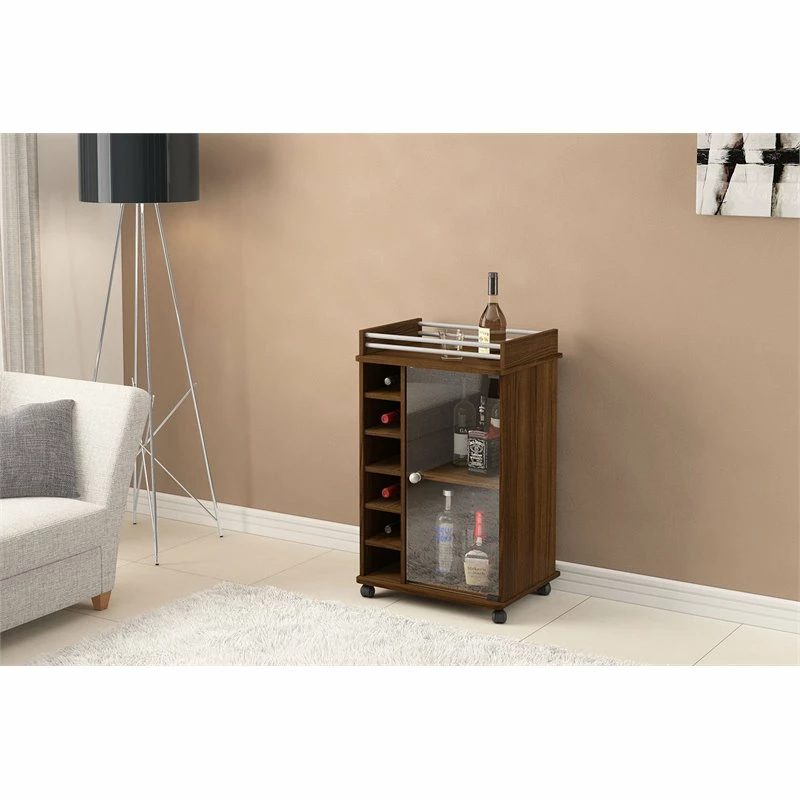 Cheapest π₯° Polifurniture Laguna Engineered Wood Bar Cart With Glass Door In Dark Brown π