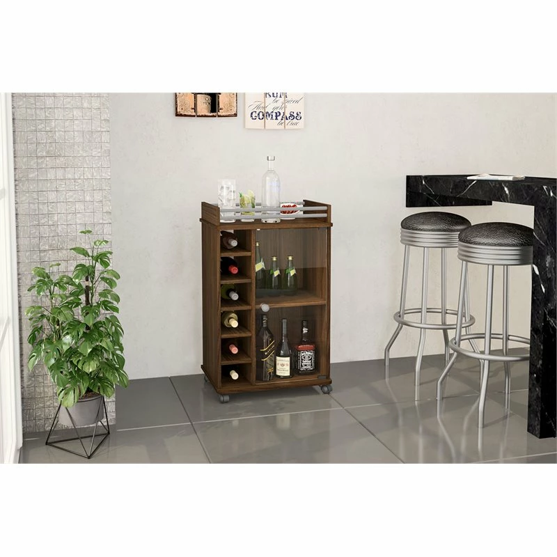The compact Laguna Bar is a perfect fit for small places that need a lot of storage. With cubbies to hold 6 bottles of your favorite drinks, three shelves for storage, and a glass door. This bar can be easily move to any place in your home with its sturdy construction. It is practical, functional, and looks good, so let the good times roll, its 5 pm somewhere in the world, and happy hour is officially on.