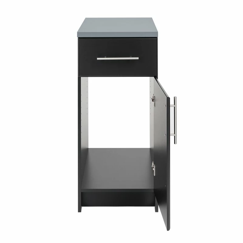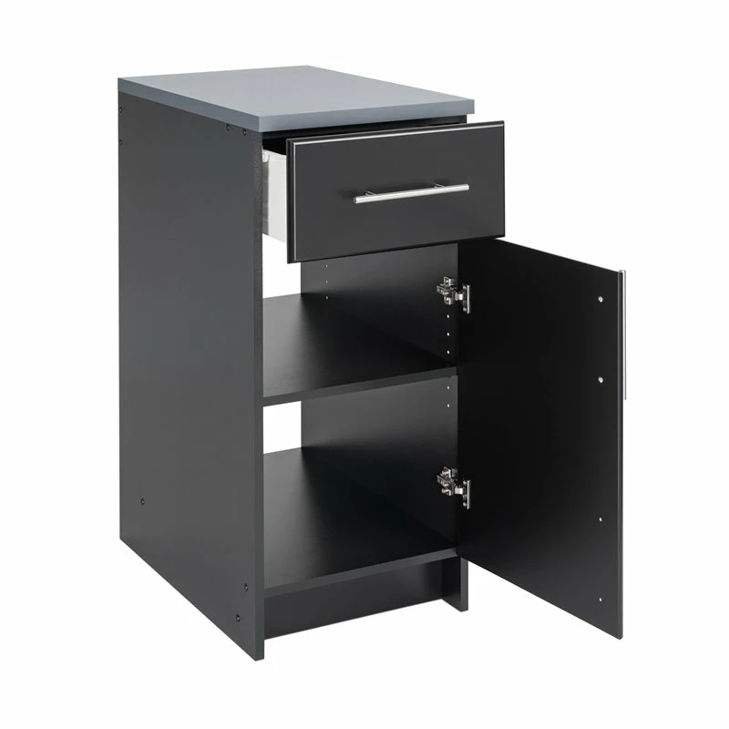 The 16” Base Cabinet combines the storage of a 20 inch long drawer and the versatility of a door that can be easily mounted to open left or right. The heavy duty drawer has a half-inch thick bottom and metal sides that roll on smooth roller glides, making it perfect for storing heavy duty items like tools. The cabinet includes one adjustable shelf and 1” thick worktop. Customizable, functional and durable, it coordinates perfectly with other pieces in the Elite Collection.