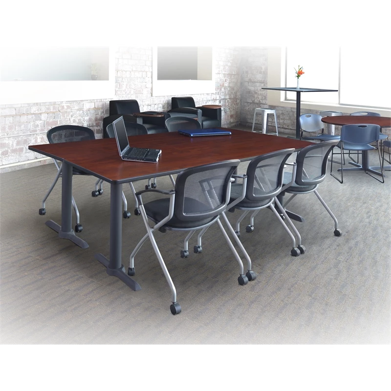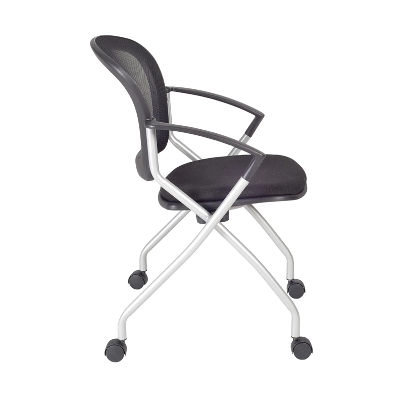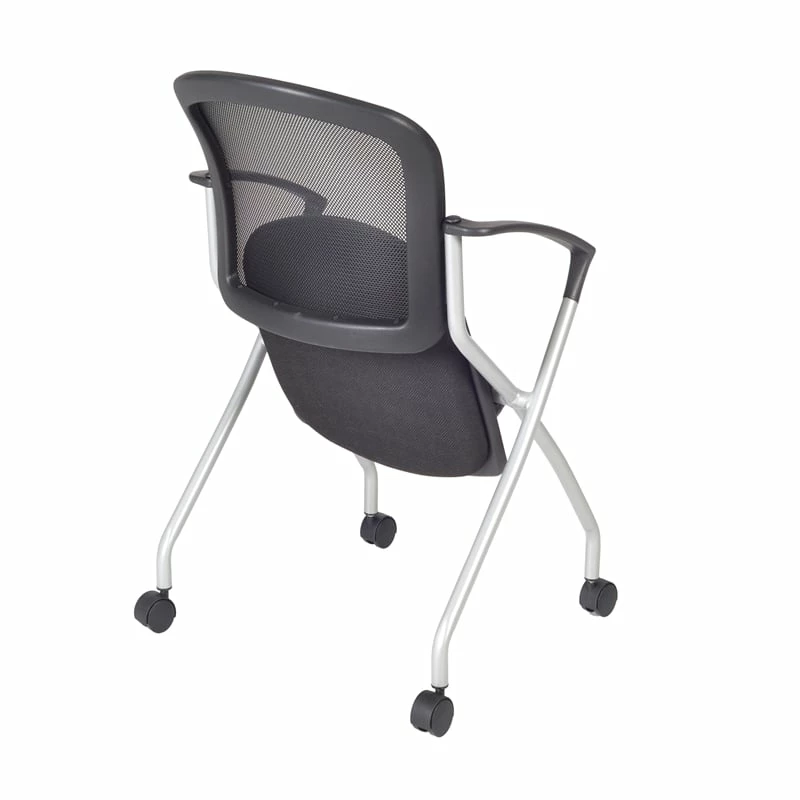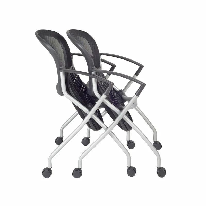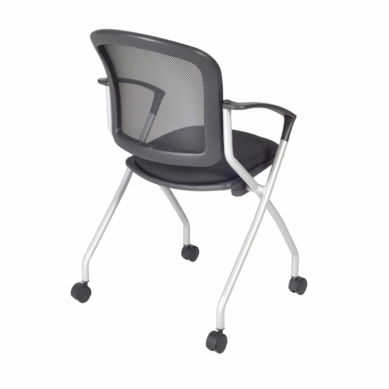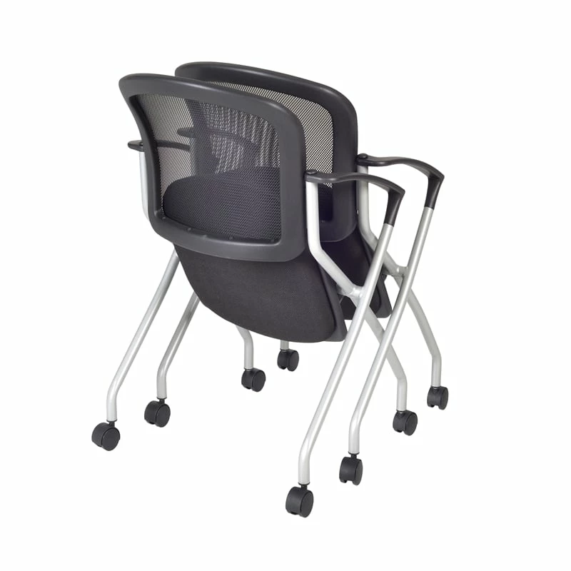 Cadence nesting chairs can take you anywhere. A breathable mesh back conforms to users’ needs and the seat flips up to provide a unique nesting option. The stylish silver base features four casters for easy mobility and the seat is upholstered with a lasting black fabric. The Cadence looks great in sets and is perfect for large training rooms, labs, classrooms, cafes or waiting rooms. All Regency chairs are backed by a 5-year limited manufacturer’s warranty on chair bases and frames and a 2-year limited manufacturer’s warranty on chair mechanisms and upholstery.