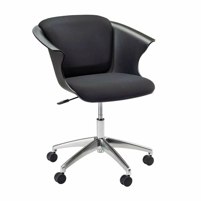 Add stylish, swiveling seating to collaborative work areas, breakrooms and reception spaces with the COSY Social Chair. Sleek and supportive, the COSY Social Chair features a contoured plastic shell with a flexible back and padded seat, so you stay more comfortable while conversing with colleagues. Swivel up to 360-degrees and adjust the seat height to better suit your needs. The 5-prong wheeled base lets you stay mobile even after you sit down and also allows the Cozy Social Chairs to be easily moved from one space to the next.