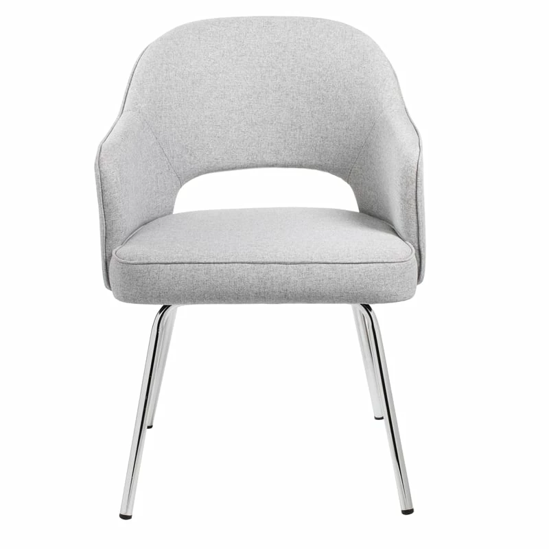 The Scranton & Co chair in granite is an exceptionally handsome design of a chair. The guest chair features a linen, fixed arm design and a breathable, semi-open back in linen for extreme comfort as well. The chair itself is understated and sleek and offers a professional guest seating option for any office or room. It also boats a strong, sturdy 4 leg tubular chair base. The base is designed in chrome and the chair has a weight limit of 275 lbs.