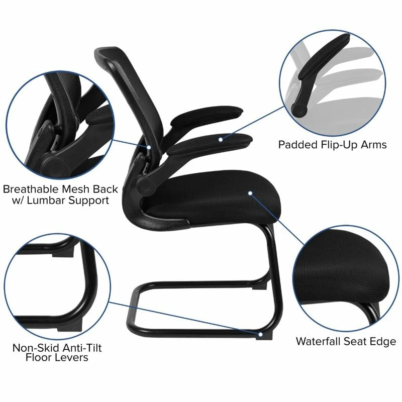 Improve the look in your office with comfortable guest seating to please all visitors. When you have in-office meetings be confident in the selection of seating that you’ve chosen, this ergonomic cantilever chair will uplift any decor. Guests in the waiting room or office will be greeted by a professional looking mesh back chair to keep guests in comfort while waiting. Pair two mesh guest chairs with a table to serve as a meeting space in the office. For longer than expected meetings, your guests won’t notice the time passing sitting on the contoured padded seat with waterfall edge coupled with the ventilated mesh back to keep everyone cool. Padded flip-up arms accommodate users who prefer an armless chair and those who want to comfortably rest their forearms during conference meetings. Set an inviting tone with seating that reflects comfort, style and durability. You will not be disappointed in your purchase, buy a pair of sled base mesh guest chairs for your office or reception area today.