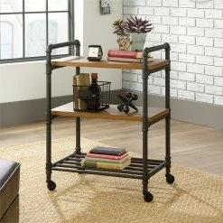 Wholesale π Sauder Iron City Multi Purpose Cart In Checked Oak And Black π